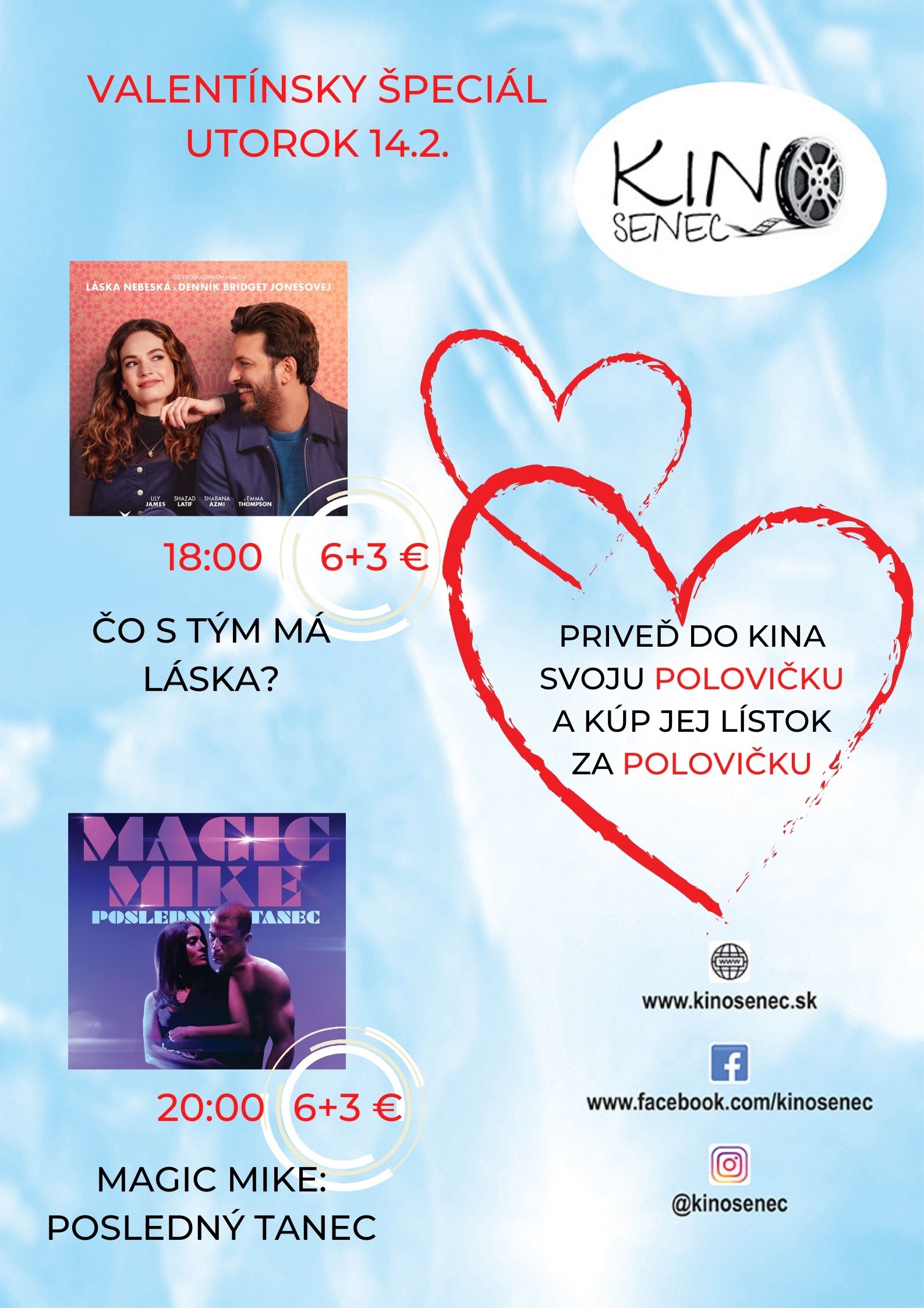 VALENTÍNSKY ŠPECIÁL 6+3,00 Eur KINO SENEC